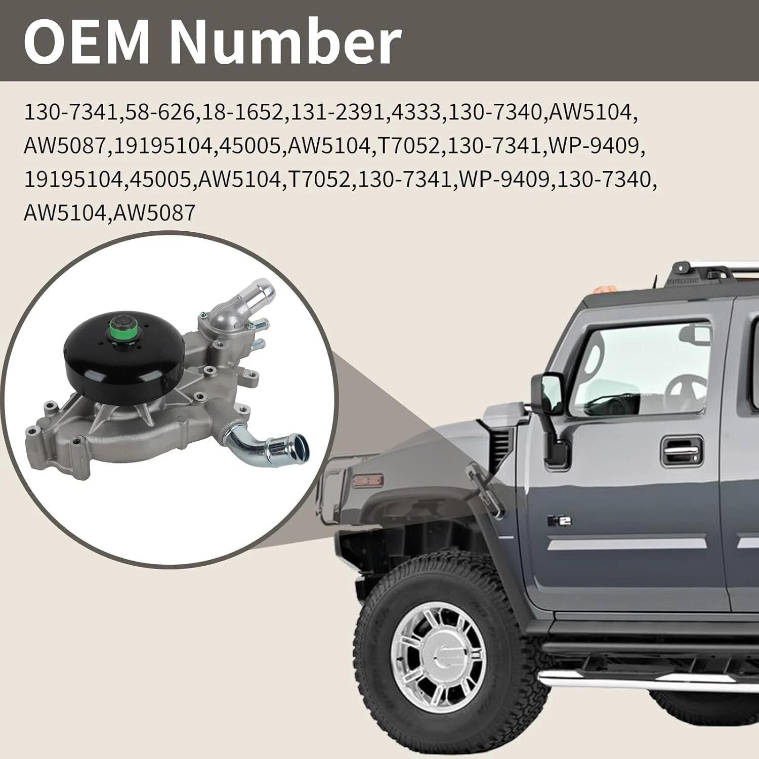 | OEM Part Number | 130-7341, 130-7320, 130-7340, AW5087, AW5104, 19195104, 45005, AW5104, T7052, 130-7341, WP-9409, 12456113 |